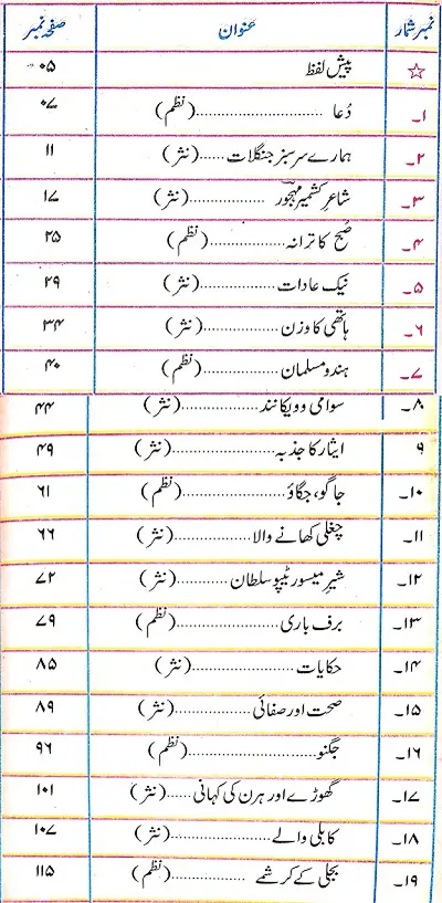 Contents of JKBOSE Books for Class 6