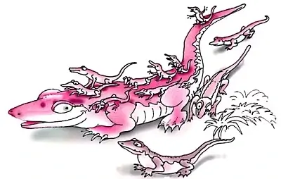 Explanation: Now crocodiles were afraid of Makara so they supported and agreed to his idea. As a result, the lizards left the forest with their young ones lying on their parent’s backs.